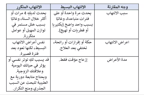معرفة الفرق بين الالتهاب البسيط والمتكرر يساعدك على فهم حالتك بشكل أفضل واختيار الوقت المناسب لزيارة الطبيب وطلب العلاج المناسب.