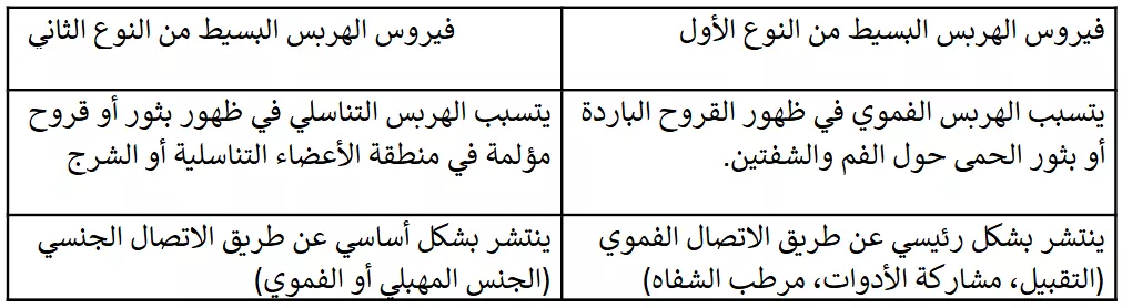 هناك نوعان رئيسيان من فيروسات الهربس البسيط: