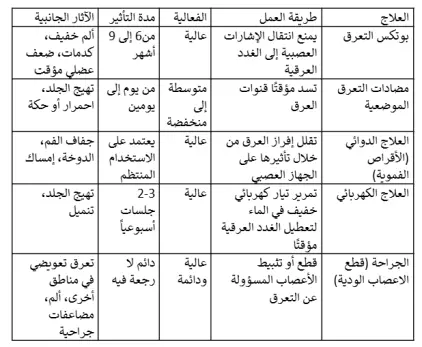 يوضح الجدول التالي أهم الفروقات بين أنواع علاجات التعرق المختلفة: